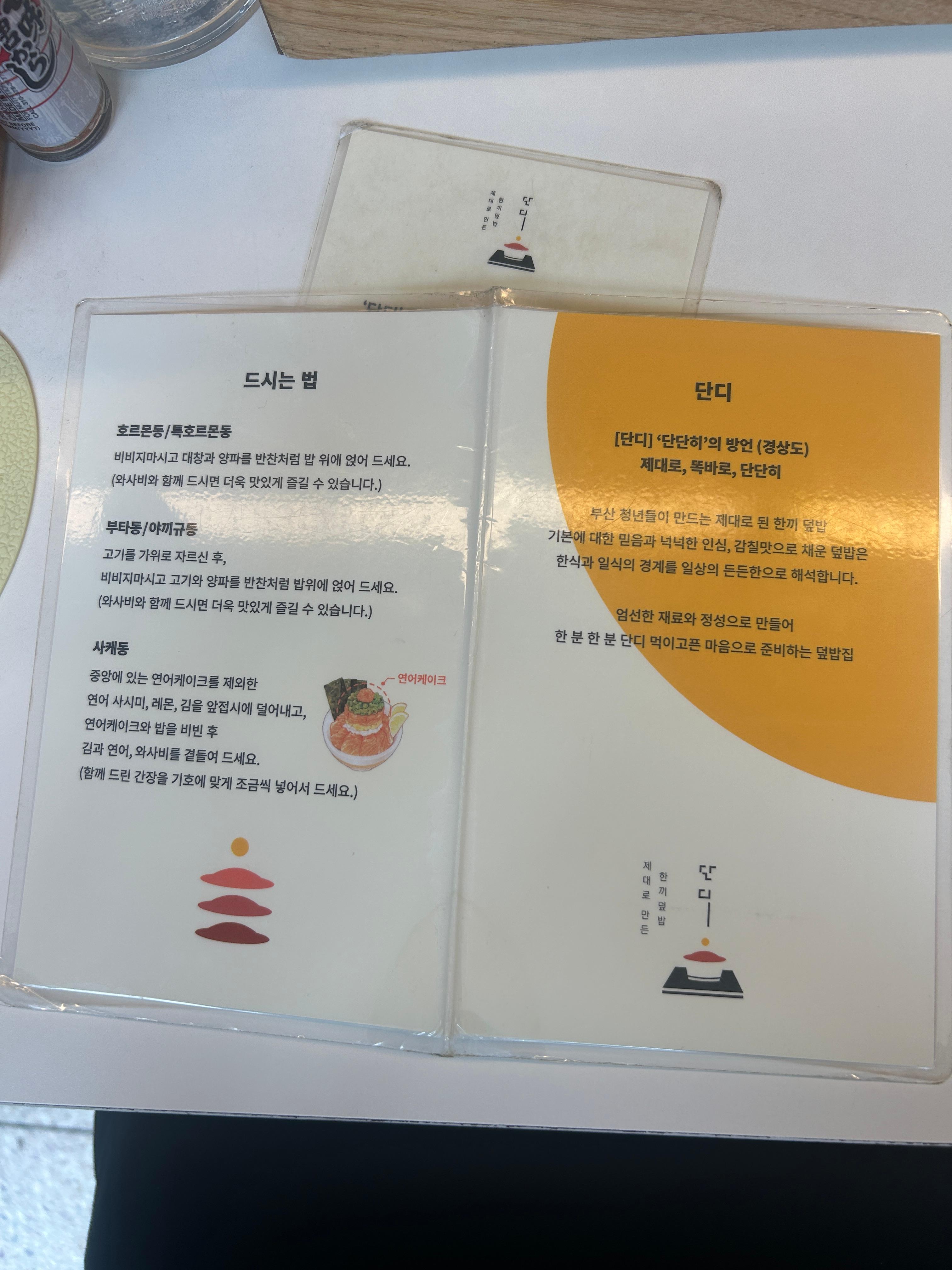 단디는 직화 덮밥 메뉴가 중심이에요.