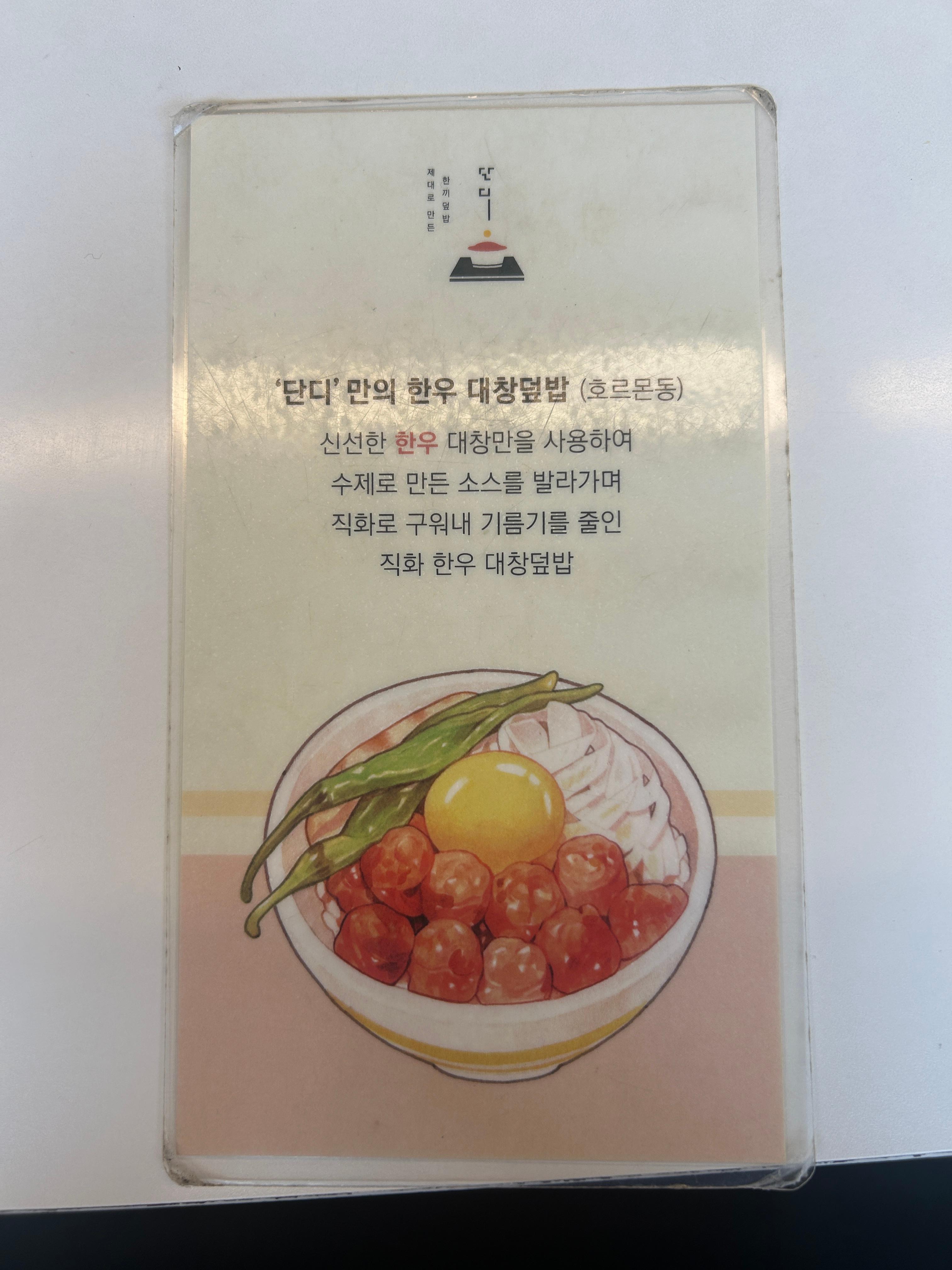 그중에서도 ‘한우 대창덮밥’을 깔끔하게 즐길 수 있는 집이 있다는 이야기에, 송파나루역 근처의 **‘단디’**를 다녀왔어요.
