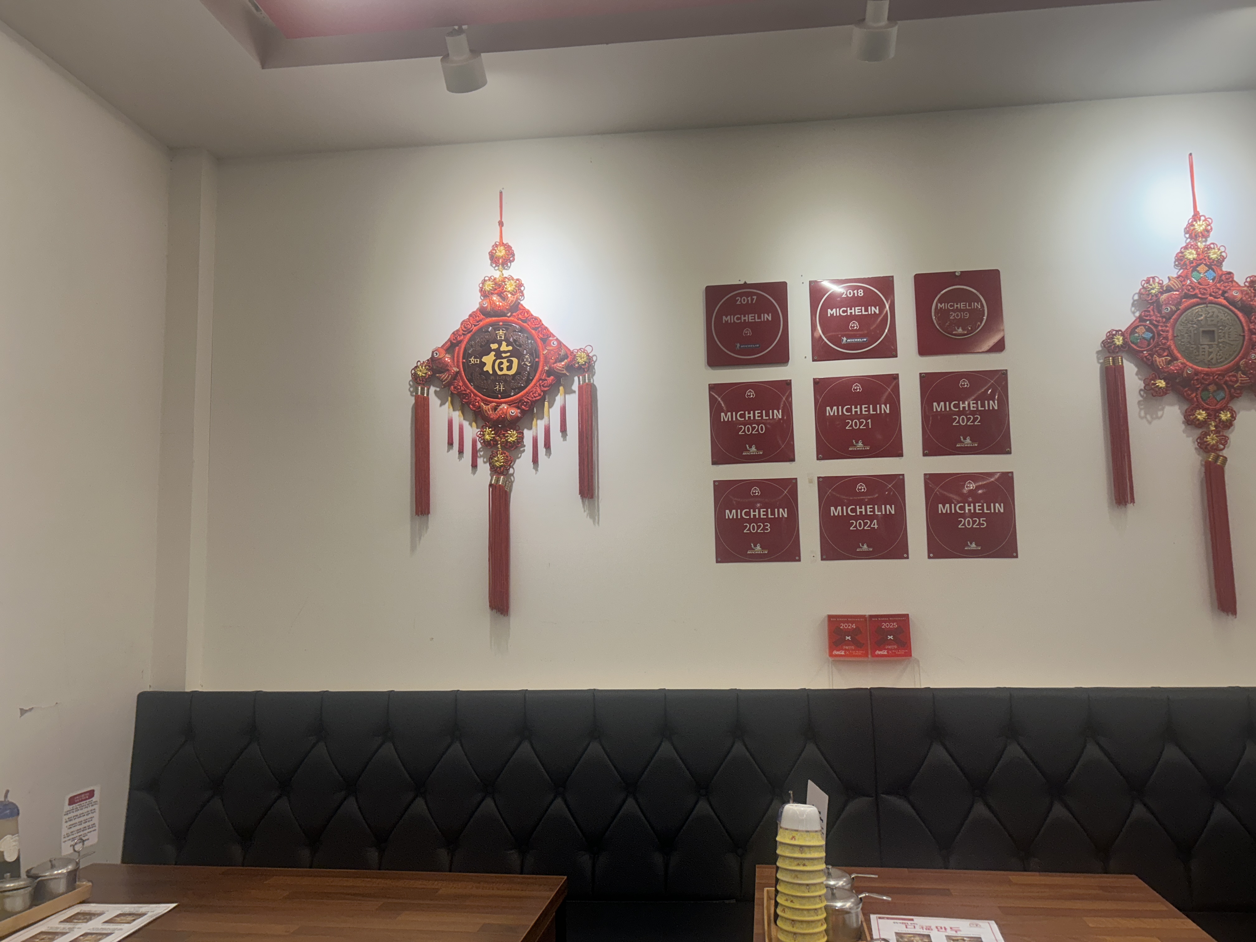 벽면엔 미쉐린 2017~2025 인증서가 쭉 걸려있고,