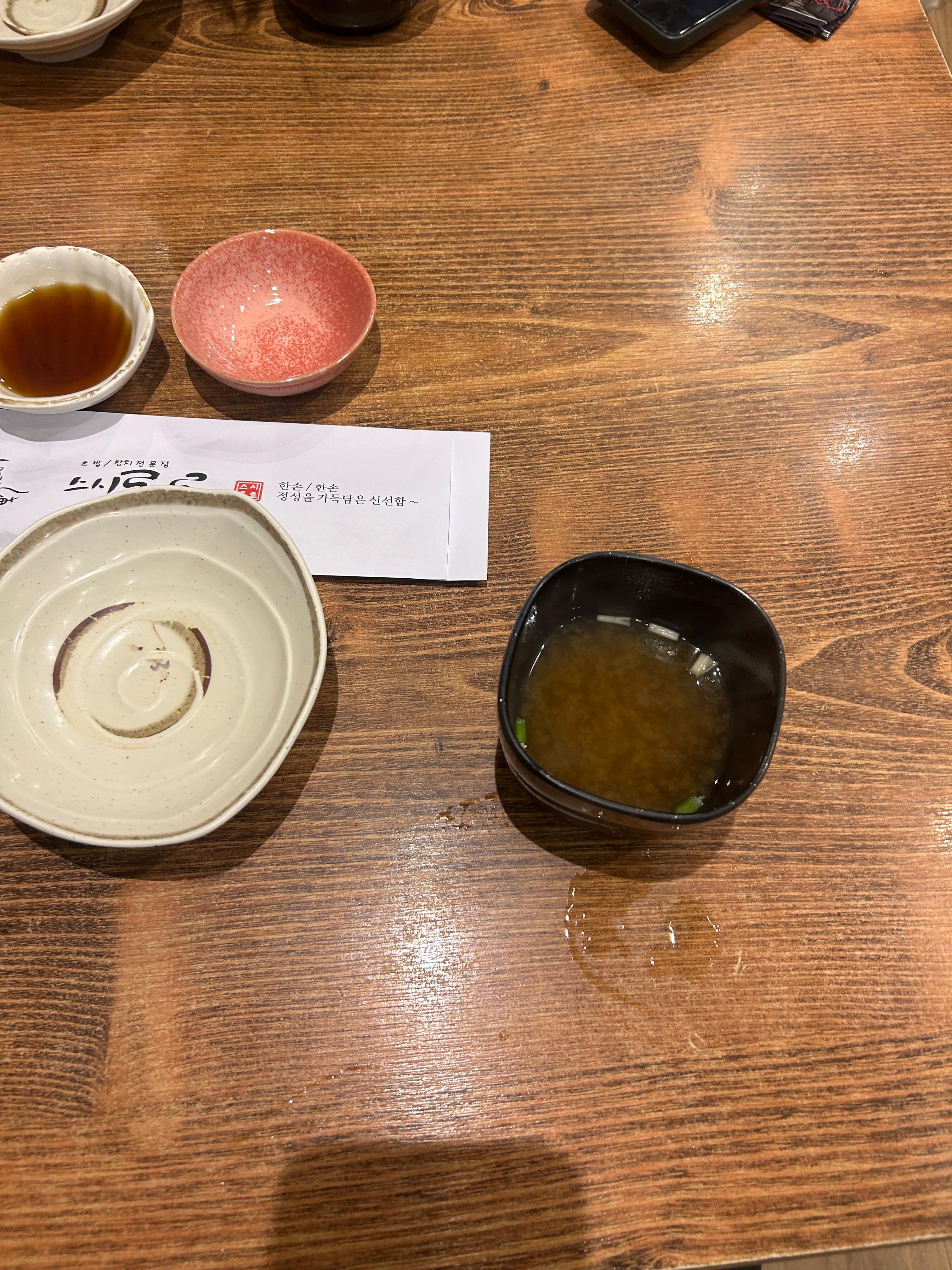 또 기본으로 제공되는 국물(미소국)은 따뜻하고 감칠맛 있어서 식사 전후에 딱 좋아요.