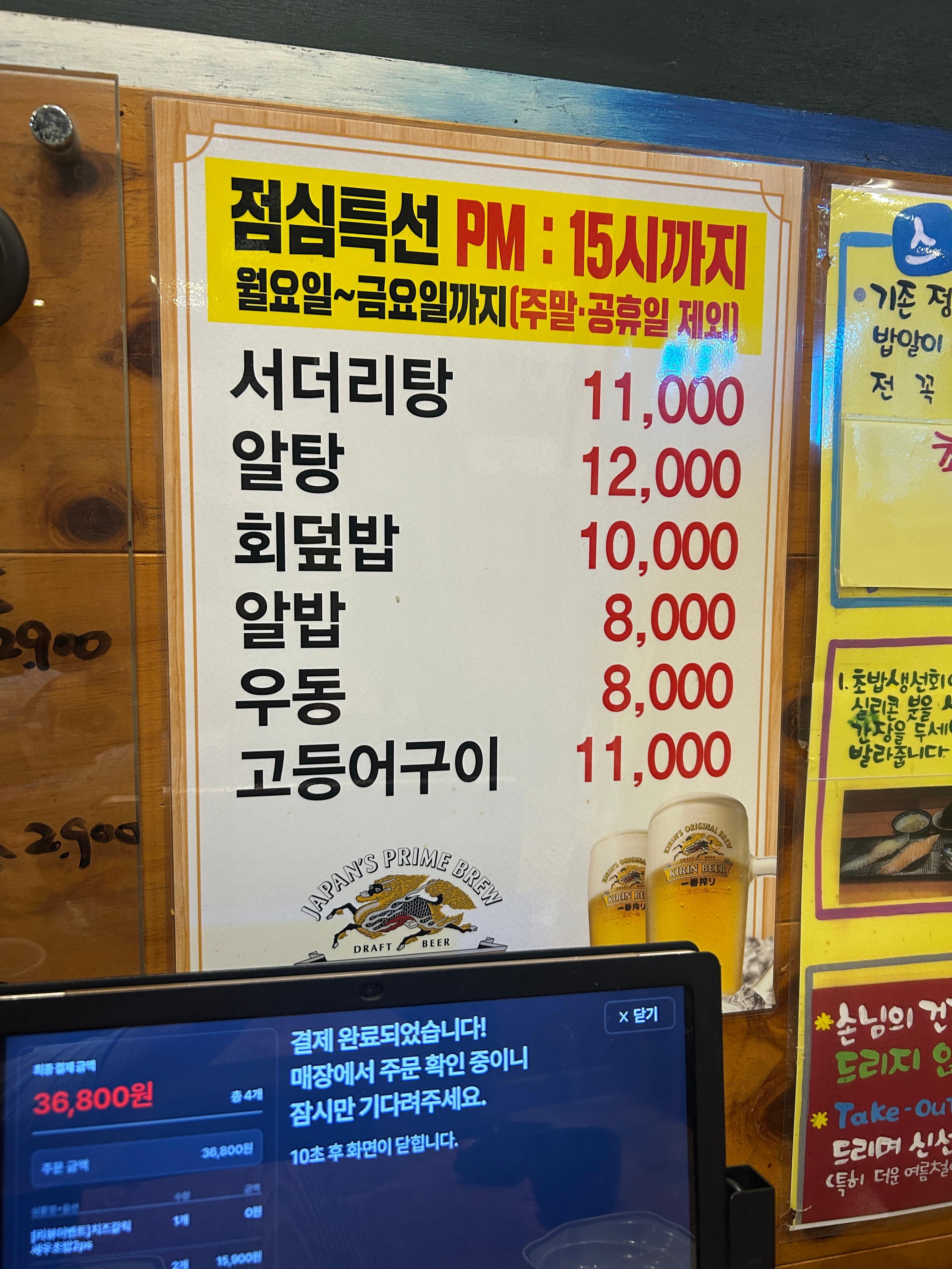 월~금 오후 3시까지 제공되는 점심 특선도 눈에 띄었어요.