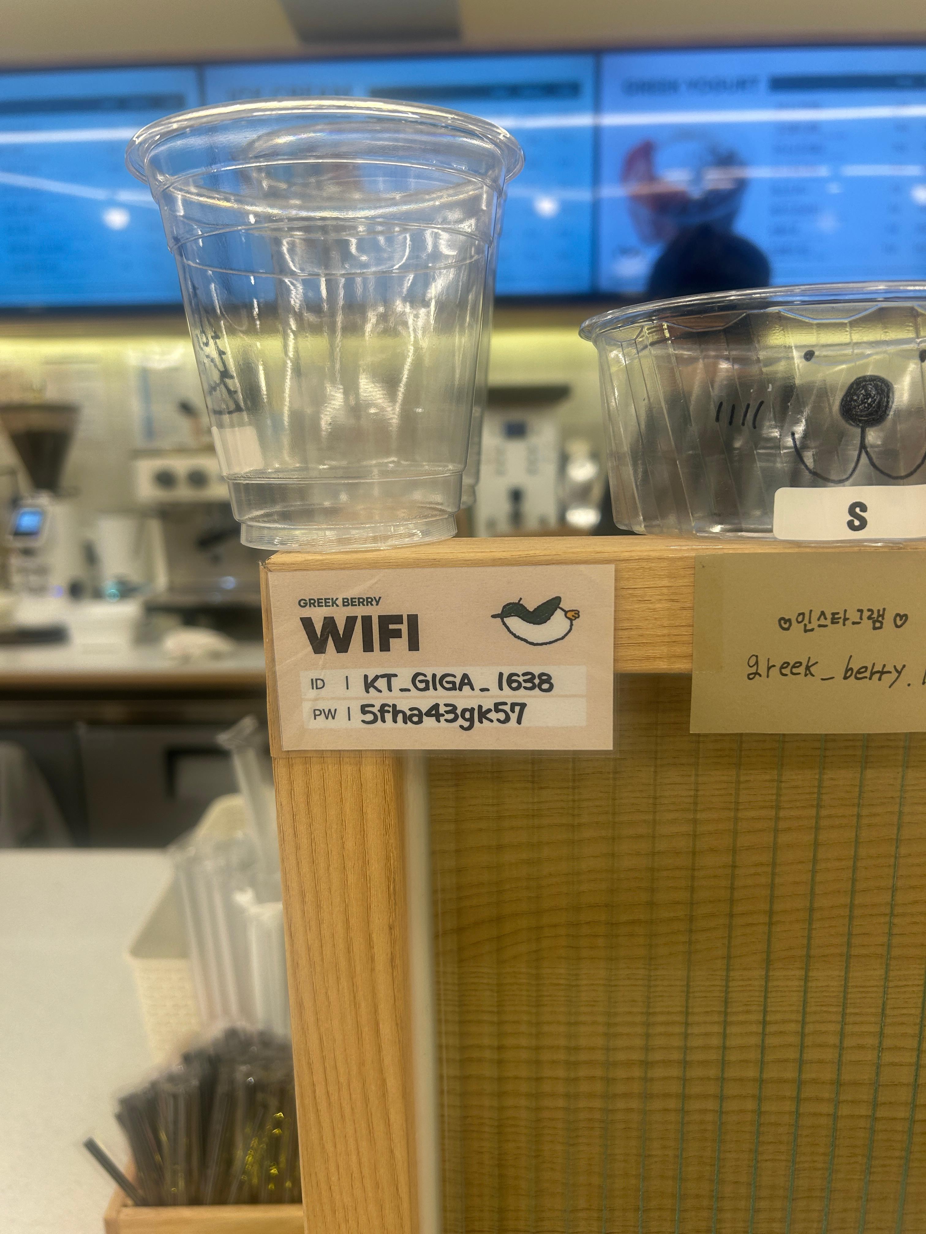 - 와이파이 ID와 비밀번호가 귀엽게 손글씨로 적혀 있고,