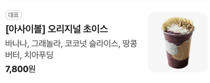 - 🍧 메뉴: [아사이볼] 오리지널 초이스 – 7,800원