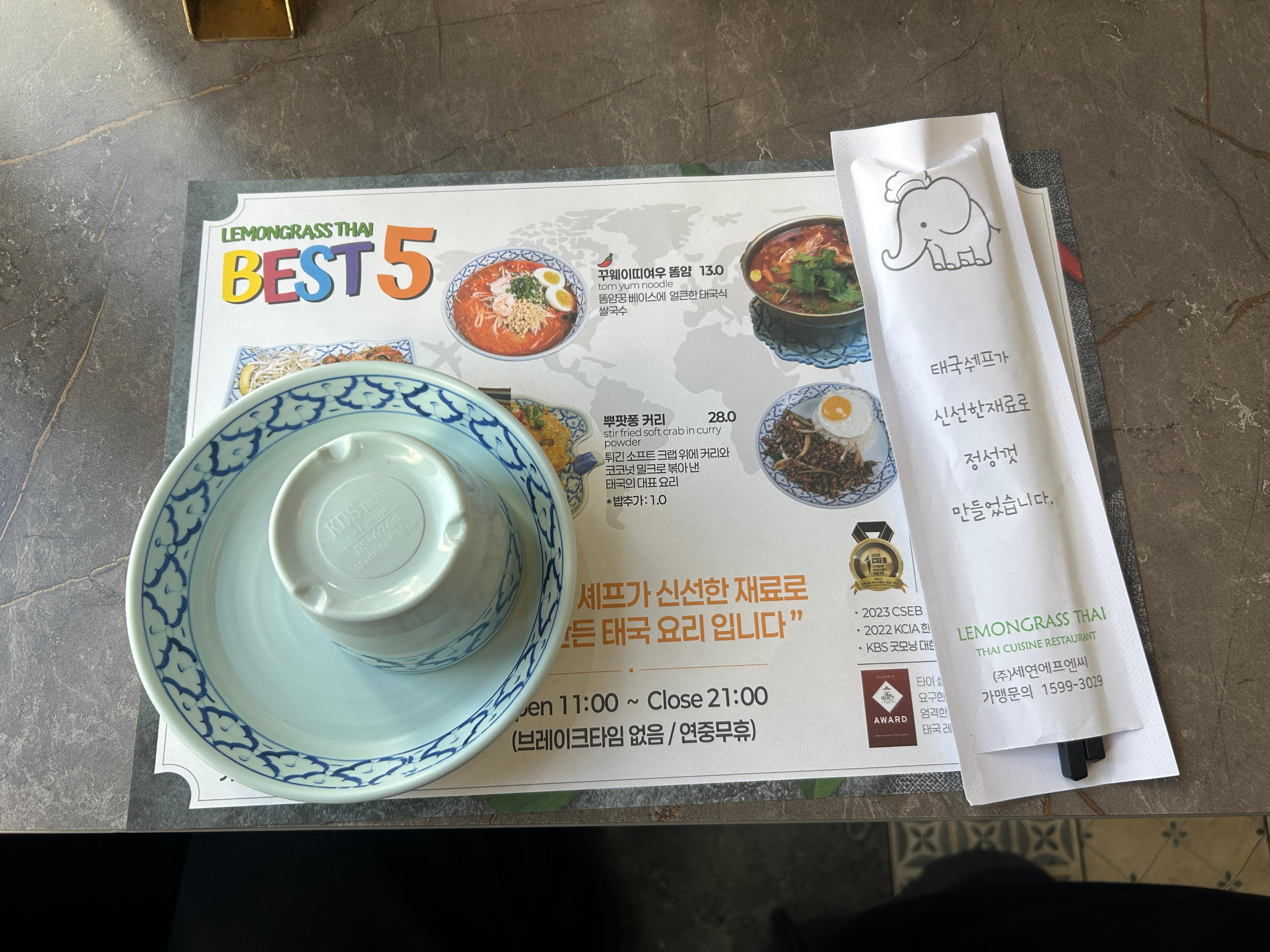 가격 대비 만족도가 높고, 맛이 과하게 자극적이지 않으면서도 태국음식의 매력은 확실히 살아 있다. 매장도 깔끔하고 규모가 있어서 부모님이나 장모님 모시고 가기에도 좋다. 무엇보다 아내가 먹으면서 정말 만족해하던 표정이 이 집의 결론이었다.